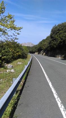 Le lendemain, après quelques kilomètres plutôt sympathiques (voir ci-dessous), étape particulièrement pénible, pour partie montagneuse certes, mais surtout parce que l'on suit en permanence la N-634 et ses lacets sans visibilité pour nous et surtout pour les véhicules motorisés qui arrivent en face alors qu'il n'existe aucune barrière de protection entre eux et nous et que l'espace entre eux et nous doit être de moins d'1 mètre, voire pas d'espace du tout dans certains virages. Ce sont sans doute des étapes comme celle-ci qui ont provoqué le désamour de la Cantabrie montré par Monsieur RUFFIN dans Immortelle Randonnée que je viens de lire après mon retour. Je ne voulais pas être pollué par des a priori, et je n'ai donc rien voulu lire sur le sujet avant mon départ.