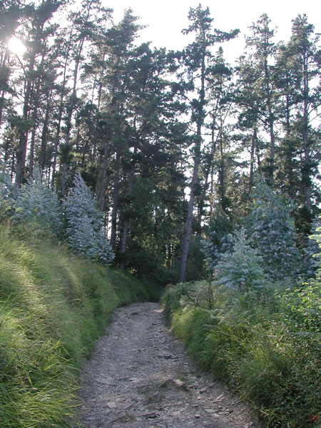 Et puis, et puis, à la sortie de Getaria on change soudain d'ambiance en prenant une montée très pentue mais encore bien pavée (photo ci-dessous à droite).